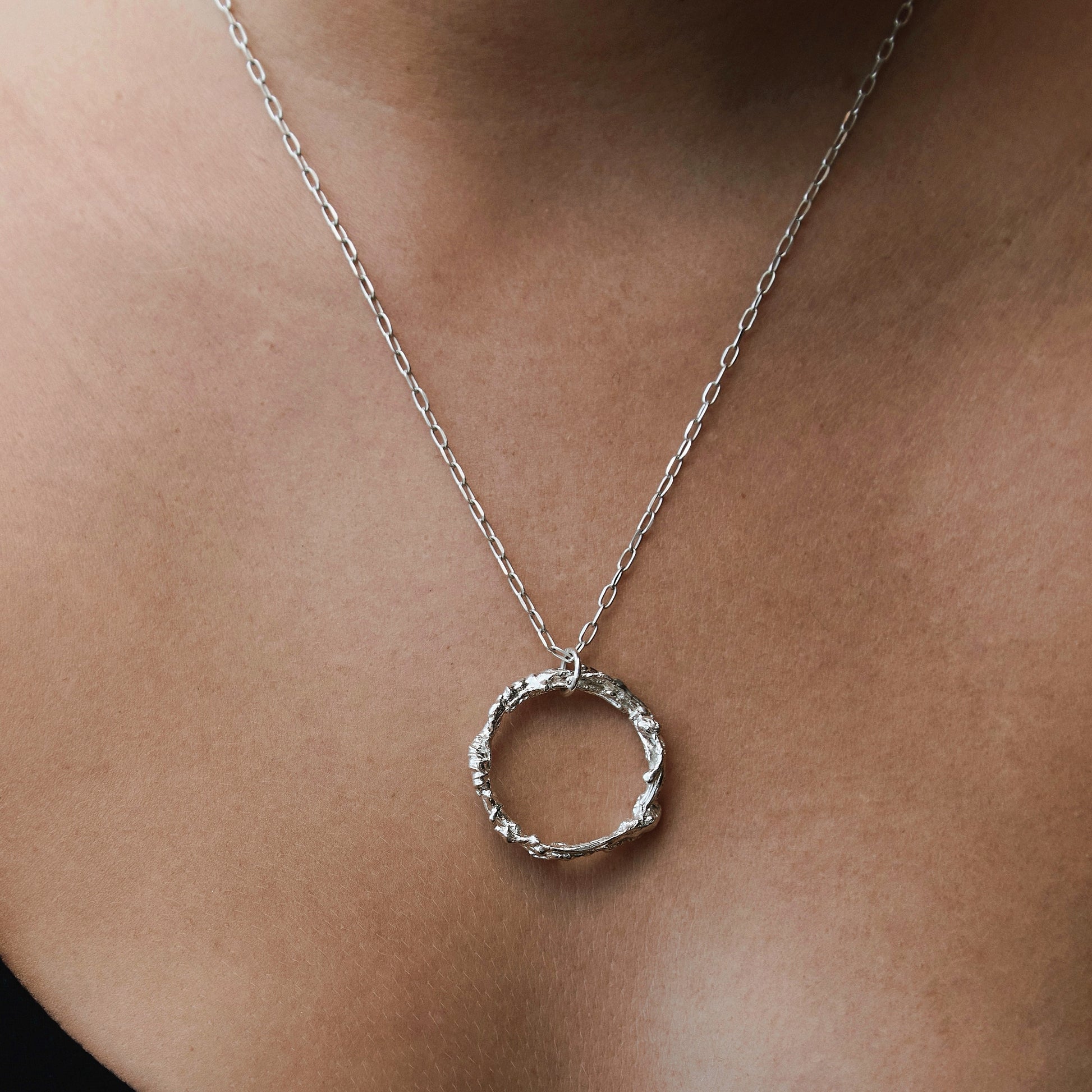 שדרגו את הסטייל שלכם עם שרשרת קרולינה, תכשיט מדהים בעבודת יד מכסף שרוף. המרקם הייחודי והגימור האומנותי שלה הופכים אותה לאביזר שובה לב שמוסיף אופי ואלגנטיות לכל תלבושת. מושלם למי שמעריכה תכשיטים ייחודיים בעבודת יד שבולטים ללא מאמץ.