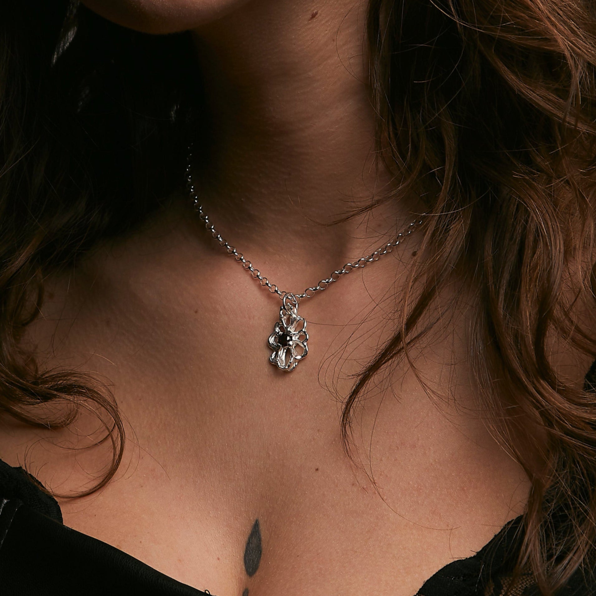 הוסיפו נגיעה של גחמה למראה שלכם עם שרשרת פאלומה. תכשיט כסף בעבודת יד זה פורח כמו פרח עדין, ובלבו אבן גארנט תוססת. מושלם למי שאוהבת אלגנטיות שובבה ונגיעת צבע בקולקציית התכשיטים שלה.